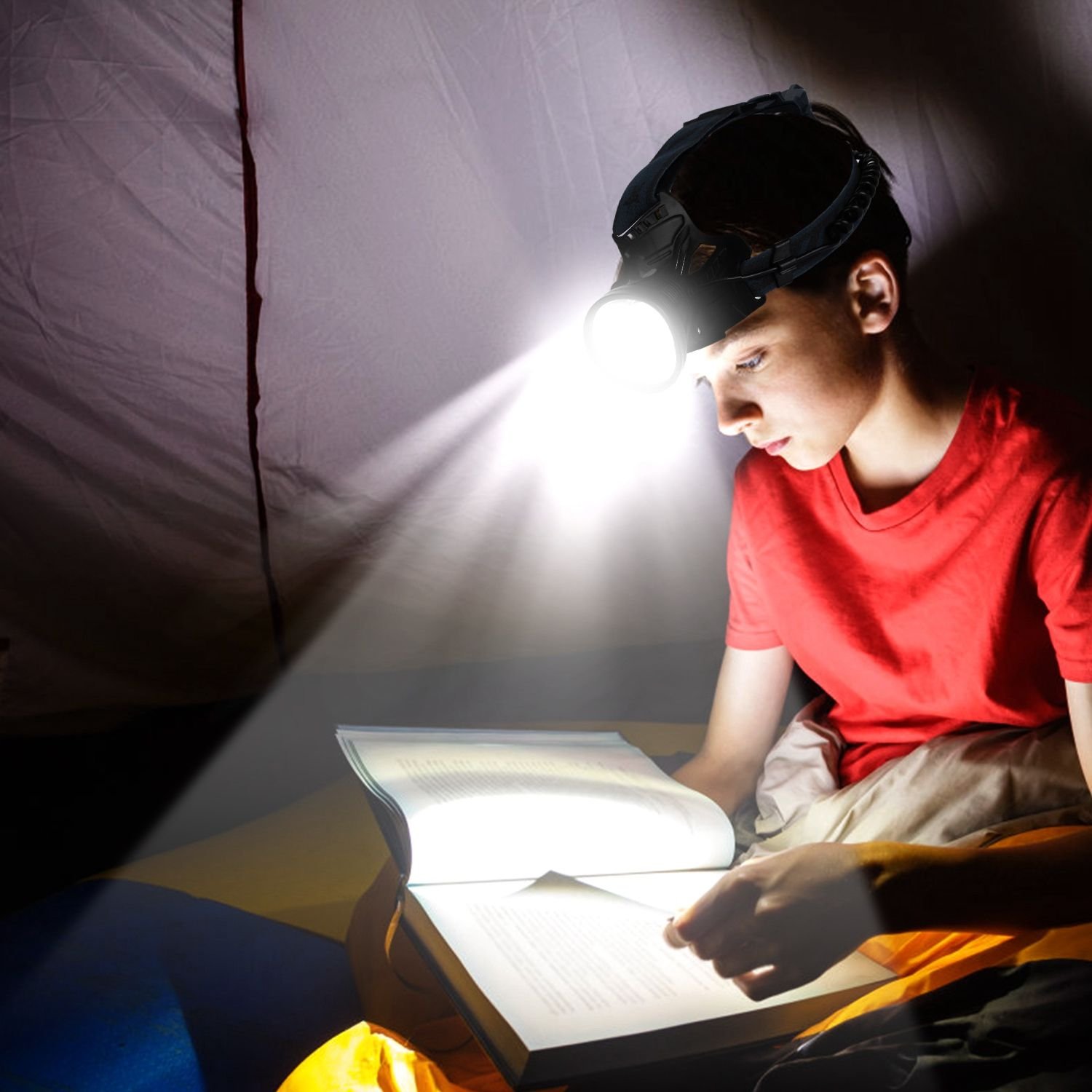 *IPX4 Waterproof & 90 Degrees Adjustable*:With IPX4 waterproof rating; our hands-free headlamp flashlight can be used in rainy and snowy days. The lamp head can be rotated 90 degrees and tightly fixed to avoid shaking. It comes with elastic band and buckle for easy adjustment and installation; suits for people of different head circumference.