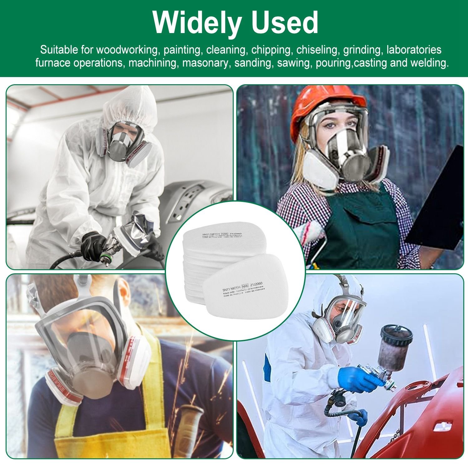 *Wide Compatibility*:The 5N11 filter cotton resists non-oily particles,which can be used with 5P71 6001-6006 cartridges,suitable for 6000/ 6100/ 6200/ 6800/ 7501/ 7502 Respirator.