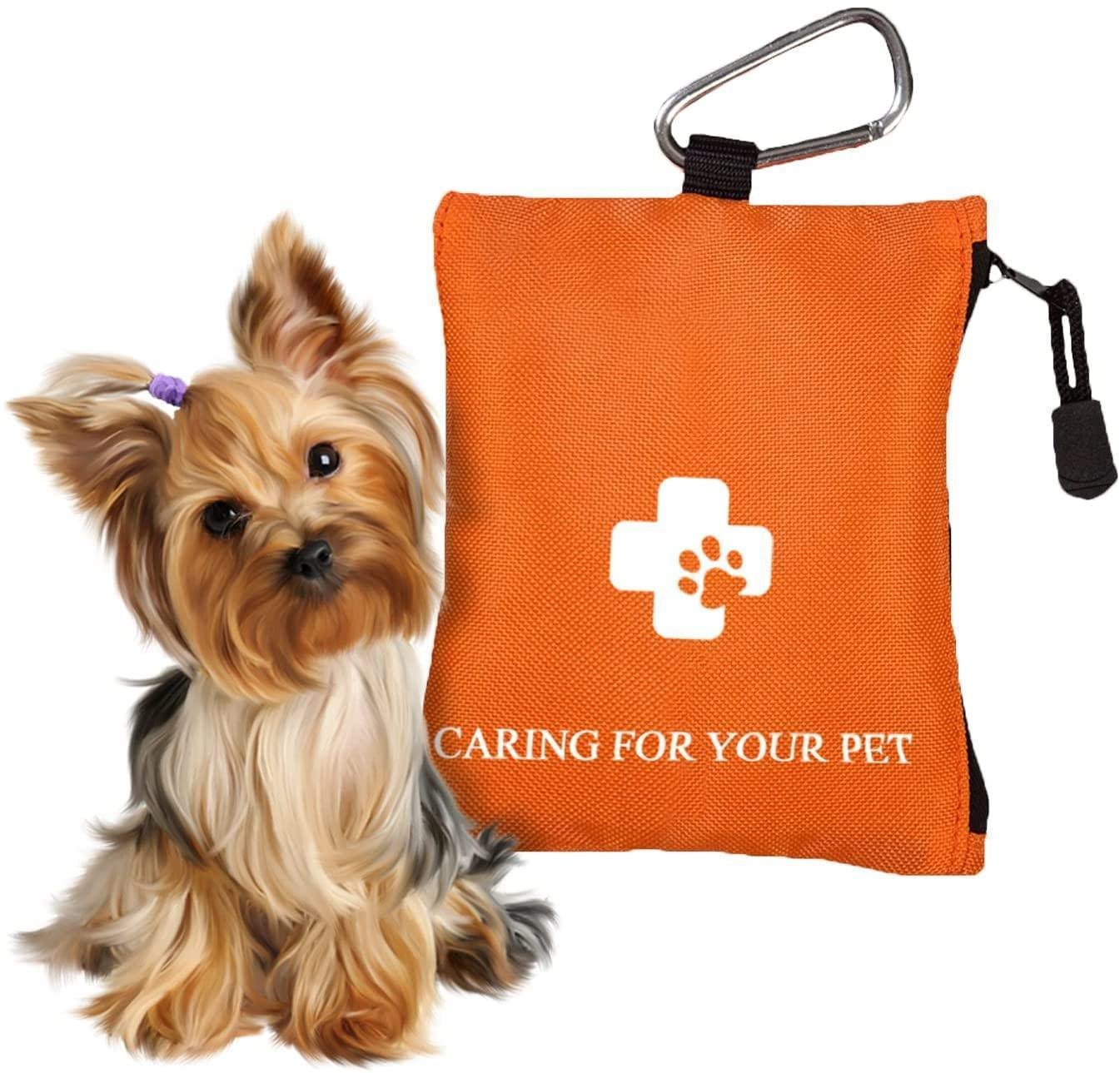 Animal First Aid Kit Portable Pet Emergency Kit of 17 Pcs Lightweight Dog Travel Pet First Aid Kit for Dogs and Cats with Zipper Carabiner