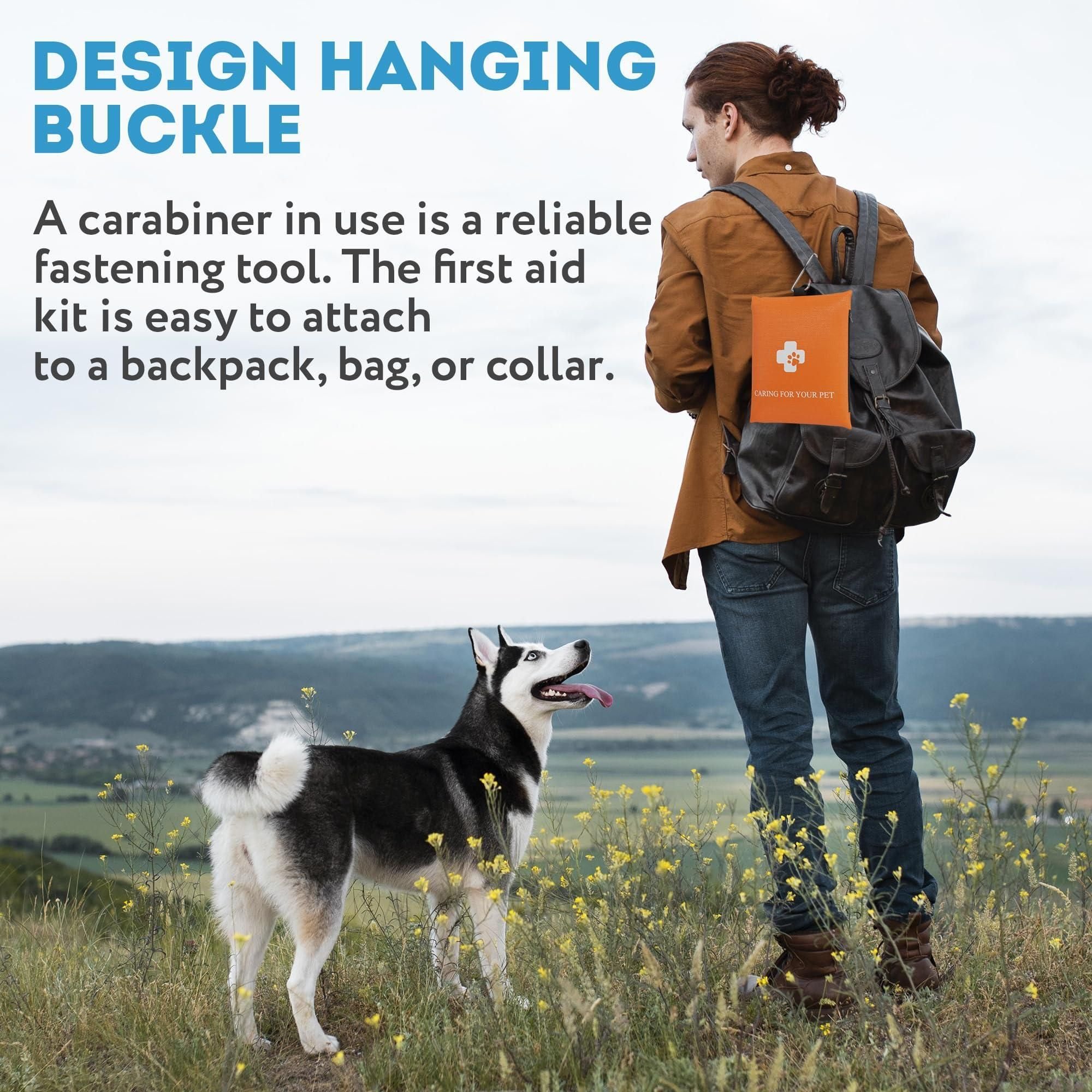 2.quality meets functionality. designed with robust woven material, cat and dog emergency survival kit is lightweight yet durable, ensuring long-lasting use. the reliable zipper and strong carabiner make hiking first aid kit for dogs and cats perfect companion for outdoor adventures and emergencies.