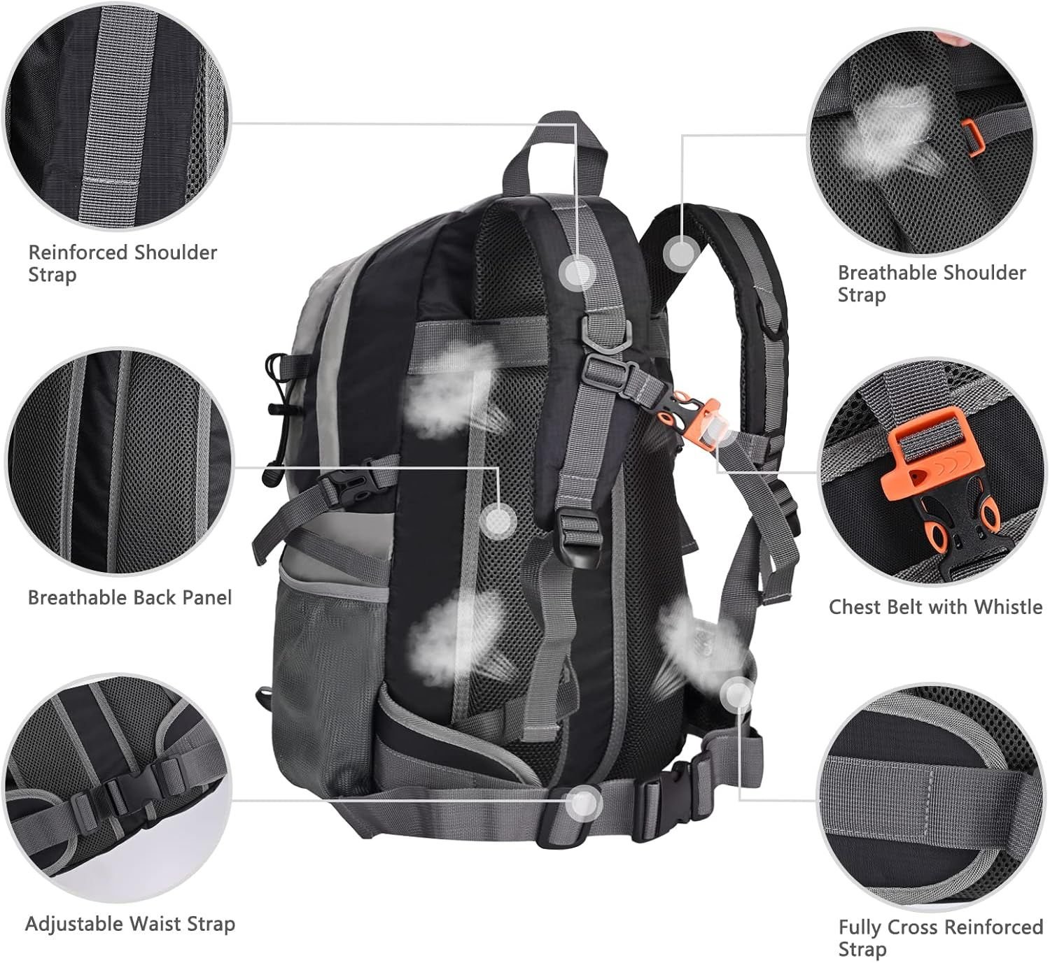 The hiking backpack is Lightweight and comfortable perfect for day-to-day use, large capacity of 40L provides enough space for vacation, travel, hiking, climbing camping and fishing. It meet size requirements for most airlines.