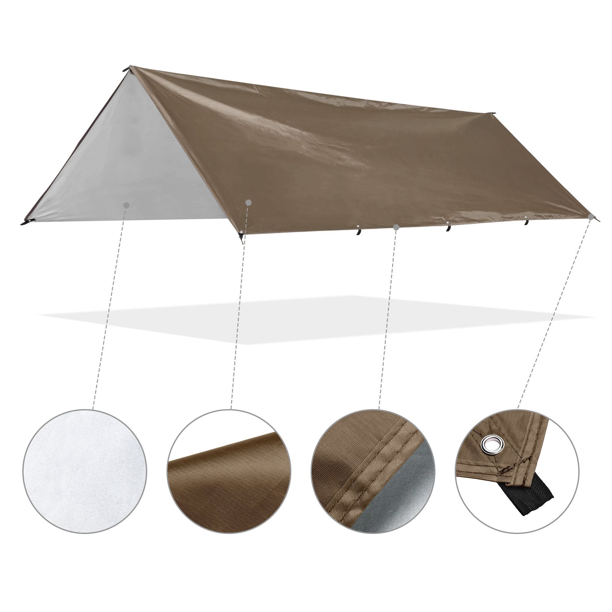 - UV Protection & Water Resistance - Made of 210D oxford fabric with silver PA coating, the tarp offers UV50+ protection for protecting you from sunlight, avoiding sunburn and reducing temperature in hot summer; shelter with PU3000mm water resistance is suitable for using on drizzling days; durable material ensures wear resistance and tear resistance for frequent use