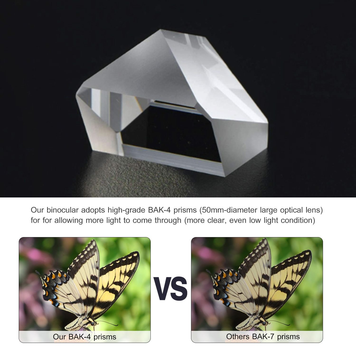 *Large Field of View*:Our binocular adopts high-grade BAK-4 prisms. With a large field of view(268Ft / 1; 000Yds); it is optimal for watching fast-moving things.