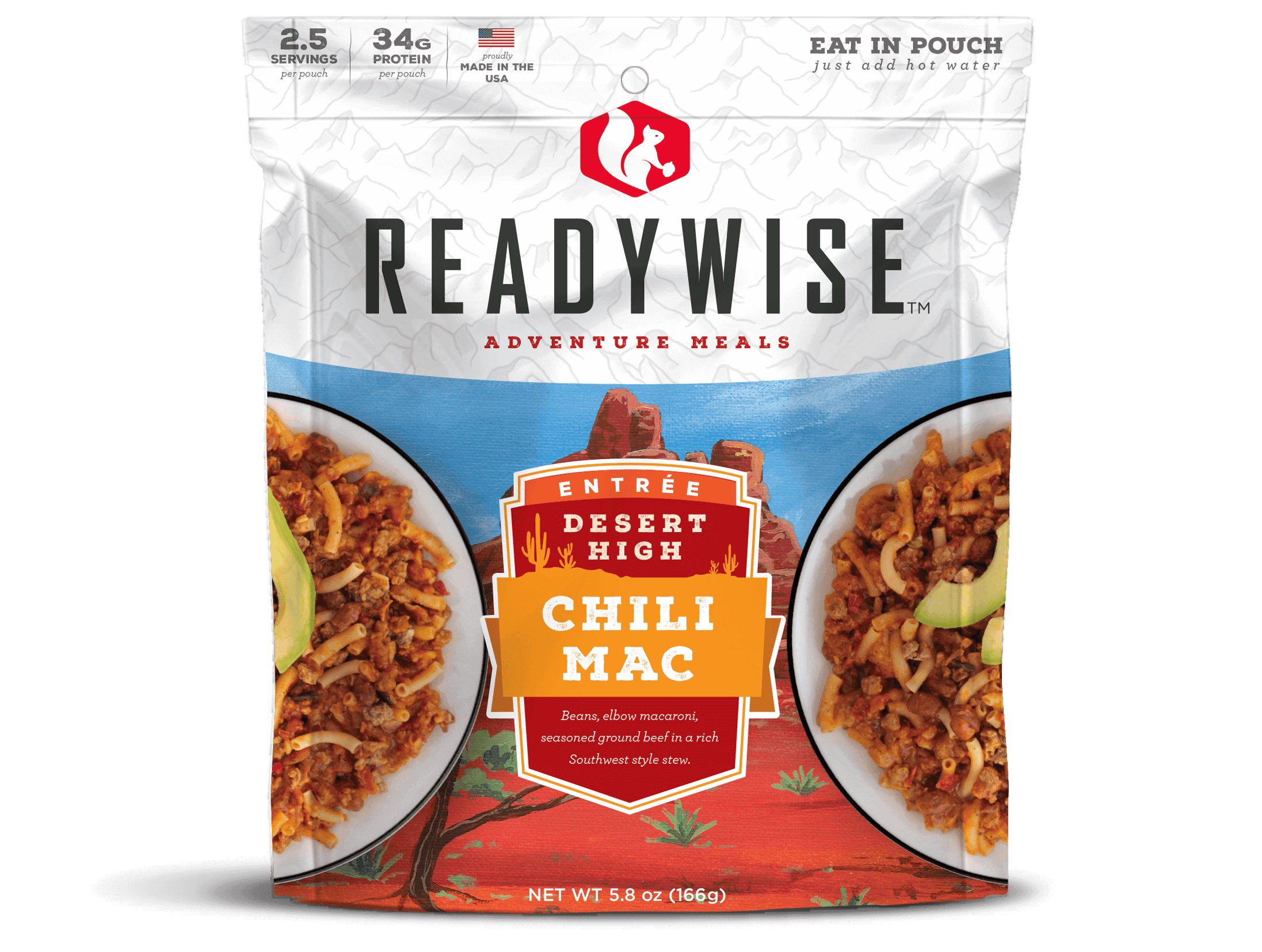 Each pouch of Desert High Chili Mac with Beef contains 2.5 servings and is resealable. These pouches are lightweight making the easily portable for any outdoor adventure. Just add water and you can eat directly from the pouch.